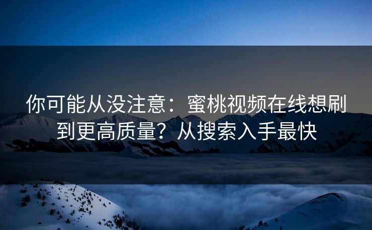 你可能从没注意:蜜桃视频在线想刷到更高质量?从搜索入手最快